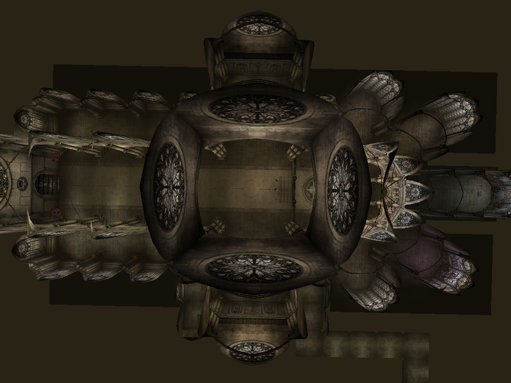 The Sanctuary Cathedral area of the Stronghold is notorious for crashes when it is explored using tools, so Shrykull has replaced it here with concept art of the layout and fragments of the area that come with other areas - the nearest I've managed to get is this
