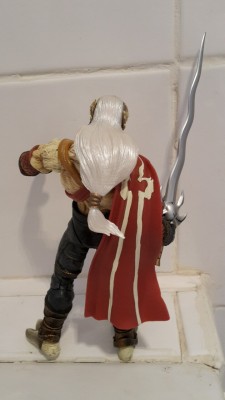 The cloak, while looking dynamic is actually fixed in place. Notice the slightly different design of the Soul Reaver blade in comparison to the BBI (NECA on left); also note that the cloak symbol is now the actual Kain symbol (as opposed to a placeholder Raziel symbol on the BBI version) - unfortunately now it’s upside down.